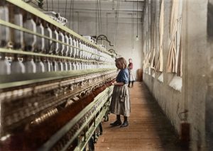 Young workers in a Southern cotton mill, highlighting early 20th-century labor conditions.